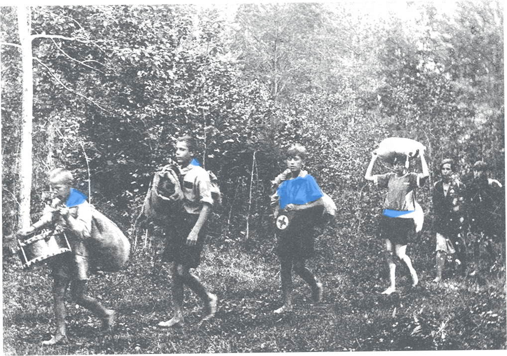 Отряд «Скаутов костра» (ОСК) в подмосковном Перхушково, 1924.