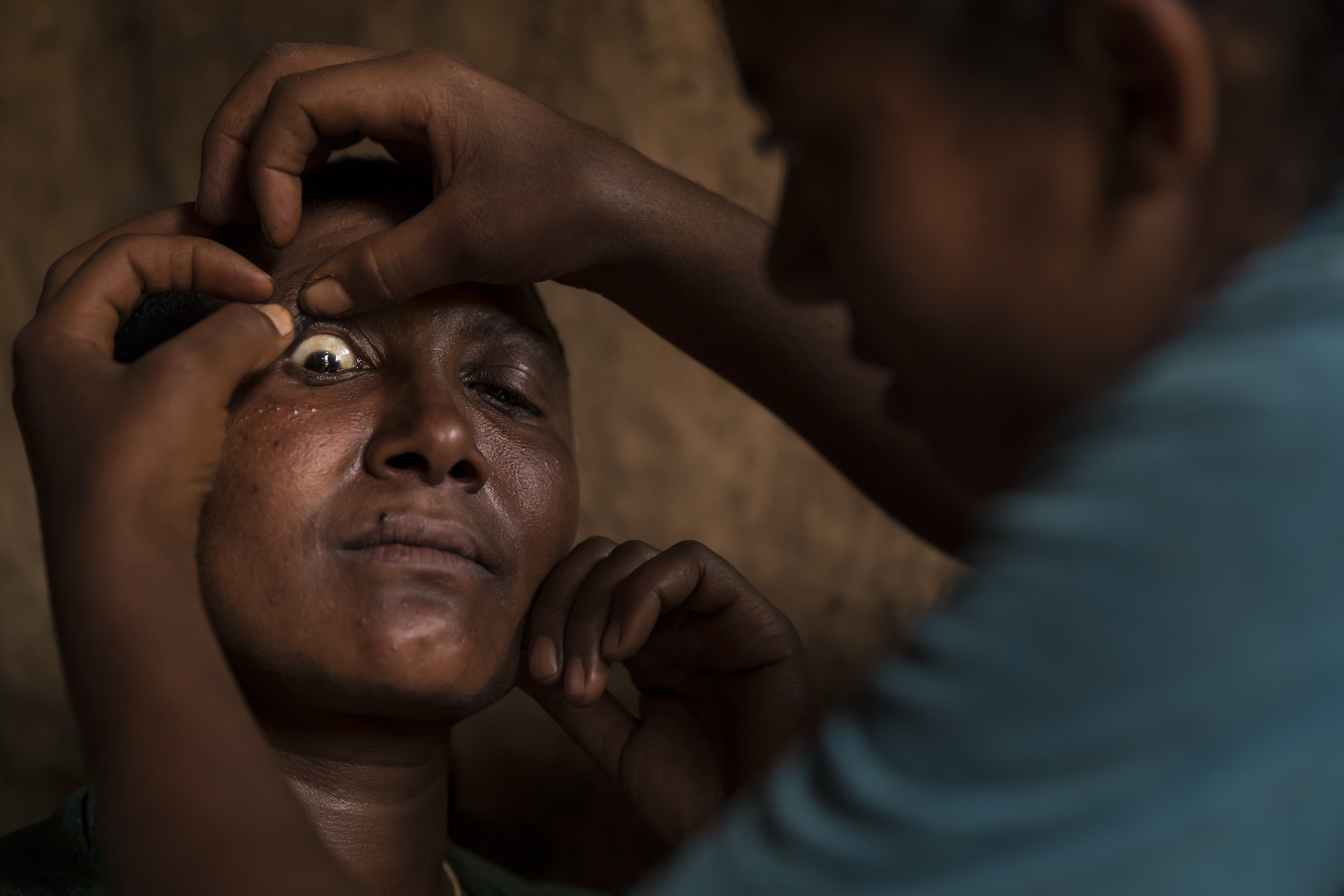 Gedefaye Metikie has had minor trichiasis (TT) for 3 or 4 years but has put off her surgery until her youngest child is weaned. In the meantime, her oldest daughter Yalemworke Gashaw lovingly epilates the eyelashes rubbing against her mother’s eye between her fingernails.