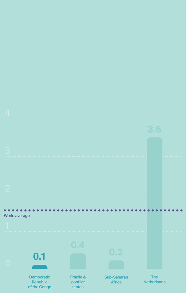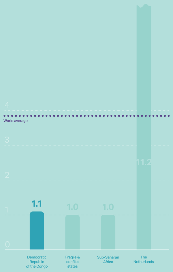 In North Kivu and South Kivu, there is less than 1 doctor per 10,000 citizens, according to government statistics from 2015 — far below the World Health Organization’s minimum threshold of 23 doctors, nurses, and midwives per 10,000 people. The shortage is due to a lack of trained health care workers, staff members not being paid, and universities being unequipped to train health professionals.